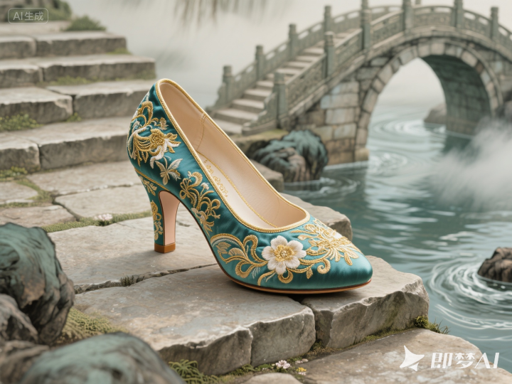 雾像稠米汤,月亮被云咬得只剩一把弯钩。青灯一盏,幽幽亮在桥栏,灯下摆着一双三寸金莲,绣面鸳鸯,鞋尖缀着一滴血珠。